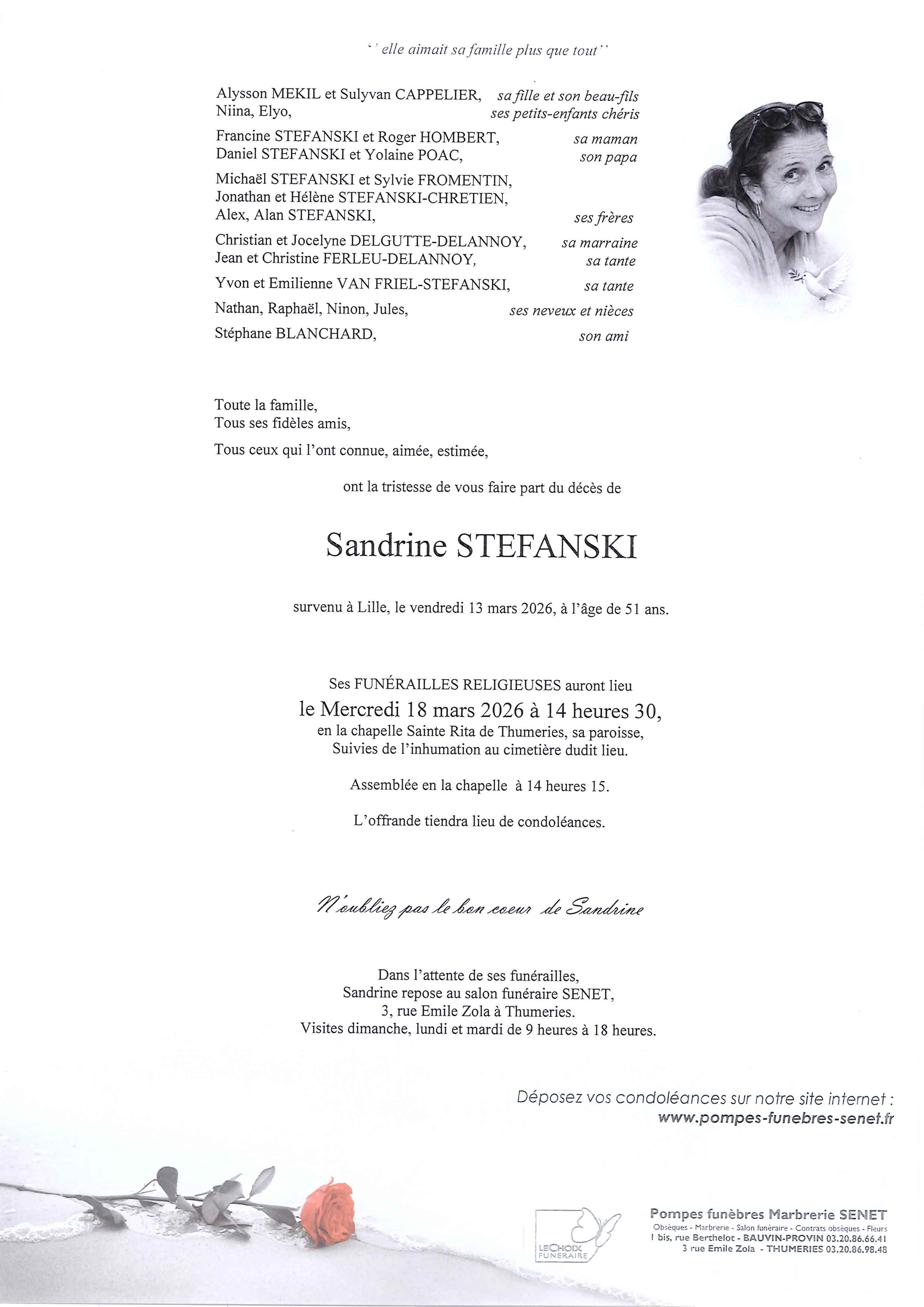 Avis de décès de Madame Sandrine STEFANSKI