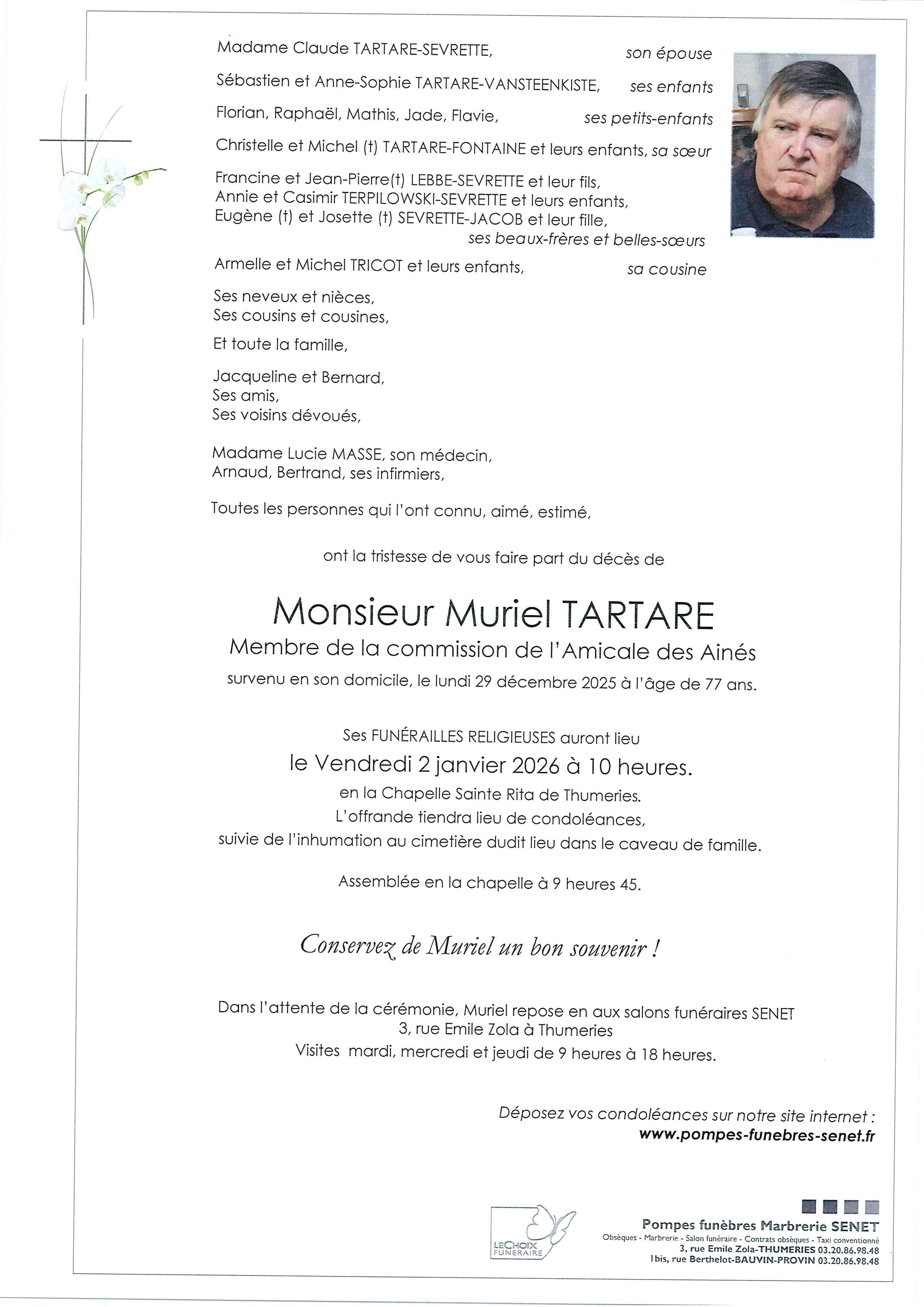 Déroulement des funérailles de Monsieur Muriel TARTARE
